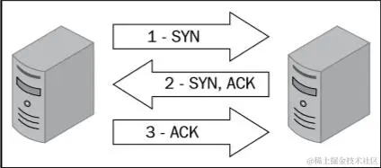 这一章中,会提及几个不同的 TCP 扫描方式。这些技巧包含隐秘扫描、连接扫描和僵尸扫描。为了理解这些扫描技巧的原理,理解 TCP 如何建立以及维护连接十分重要。TCP 是面向连接的协议,只有连接在两个系统之间建立之后,数据才可以通过 TCP 传输。这个和建立 TCP 连接的过程通常使用三次握手指代。这个内容暗指连接过程涉及的三个步骤。下图展示了这个过程: