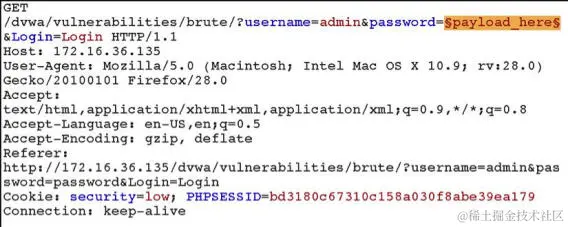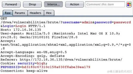 GET /dvwa/vulnerabilities/csrf/?password_new=password&password_ conf=password&Change=Change HTTP/1.1