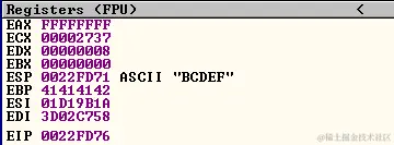| EIP | 这是指令指针,大小为 32 位,在本章中是最关键的指针。它还保存着下一条要执行的指令的地址。 |