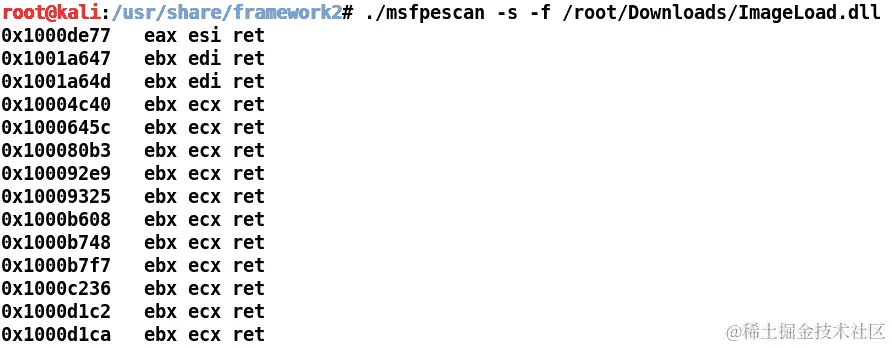 使用 msfpescan