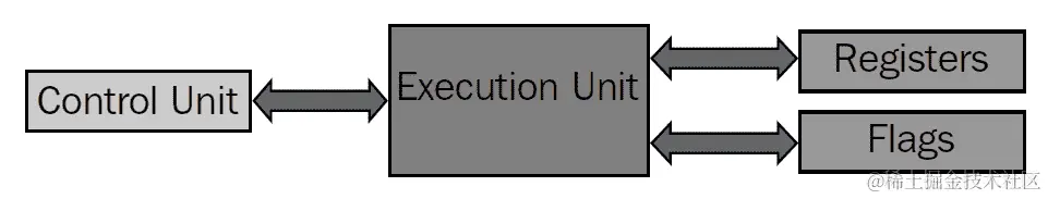 上述图表显示了 CPU 的基本结构,包括控制单元(CU)、执行单元(EU)、寄存器和标志等组件。让我们通过下表来了解这些组件是什么: