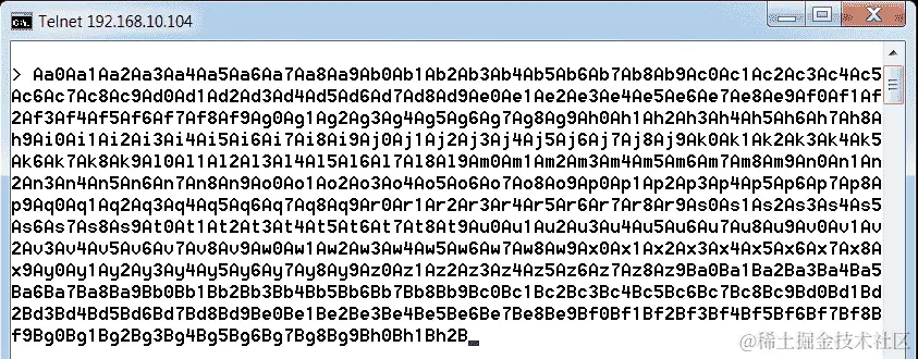我们可以看到这是一个小型示例应用程序,它监听 TCP 端口200。我们将通过 Telnet 连接到该应用程序的端口200并向其提供随机数据,如下面的屏幕截图所示: