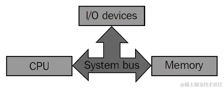 我们可以清楚地看到系统中的每个主要组件都是通过系统总线连接的。因此,CPU、内存和 I/O 设备之间的所有通信都是通过系统总线进行的。