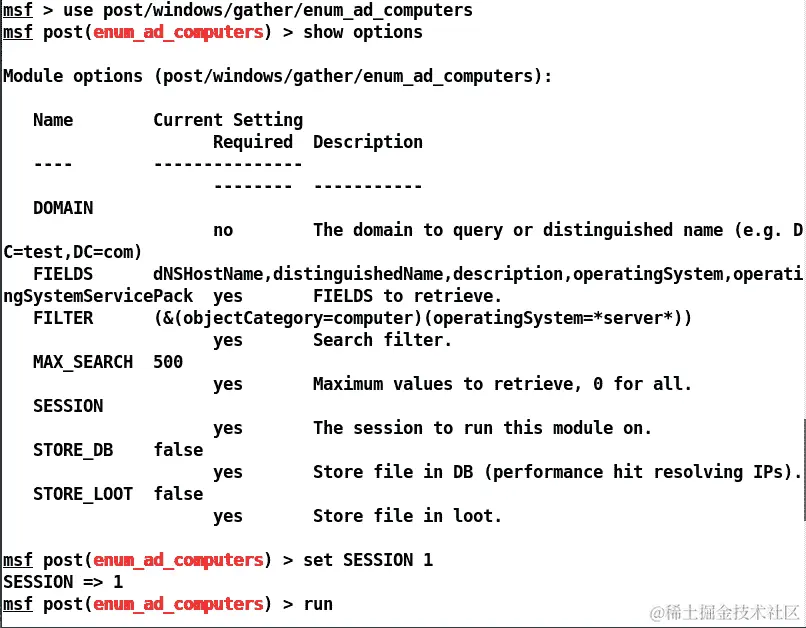 我们可以看到我们已经设置了所有必需的选项,如USERNAME、PASSWORD和SESSION。让我们运行这个模块,看看我们的用户是否被添加到域中: