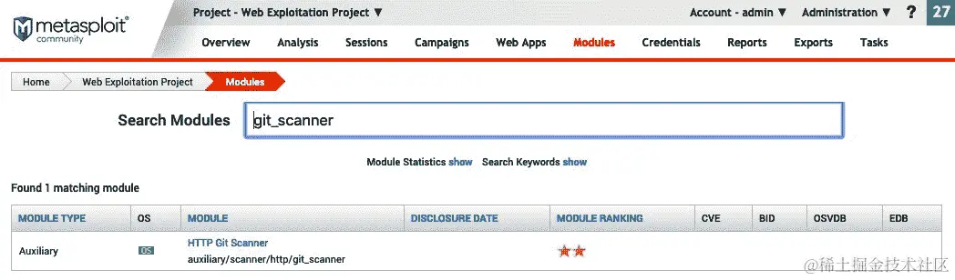 让我们看看git_scanner模块,它可以帮助我们发现网站上配置错误的存储库:
