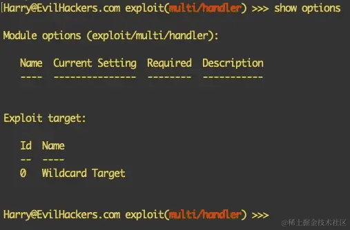 - 点击模块将重定向我们到选项页面,在那里我们可以设置目标地址、RPORT、路径、VHOST 等。在我们的案例中,我们使用了