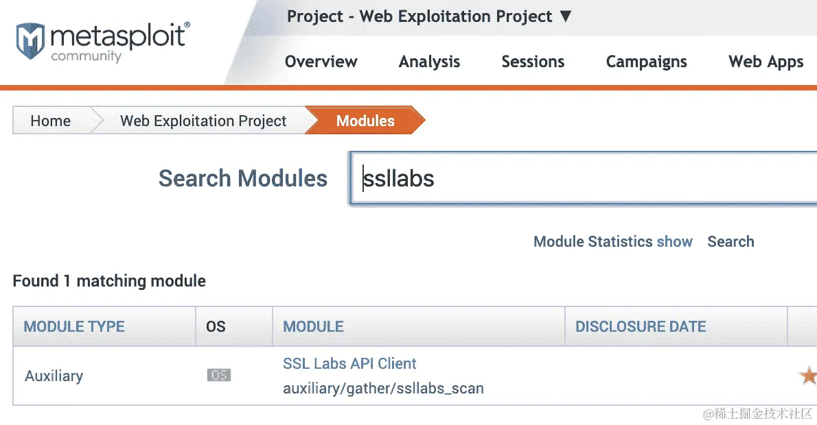 ssllabs关键字,以找到模块,如下面的屏幕截图所示: