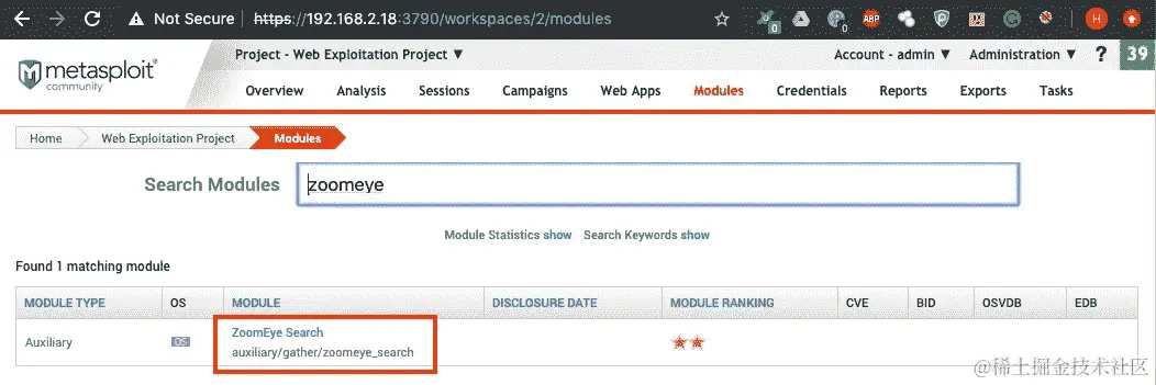 - 要运行 Zoomeye 模块,我们可以搜索