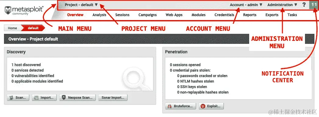 第三章《Metasploit Web 界面》专注于 Metasploit Web GUI 界面的介绍,该界面可在 Metasploit 社区版中使用,然后再深入其他主题。
