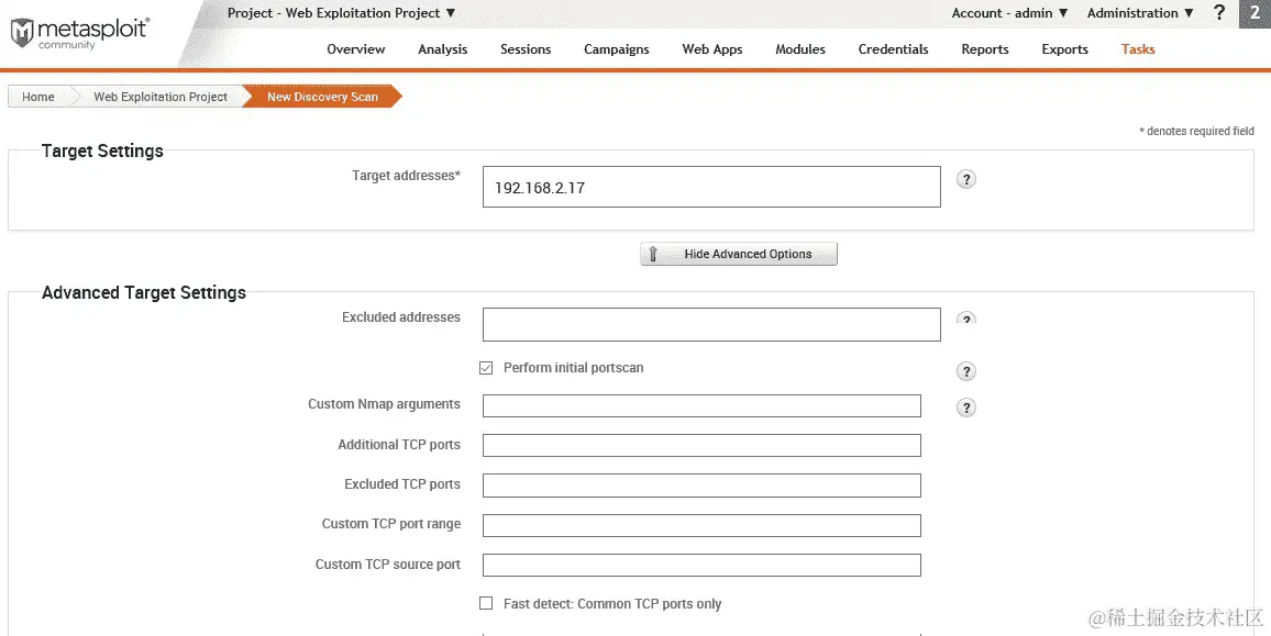 Metasploit Web 界面中的端口扫描有点有 bug。你能对此做些什么?