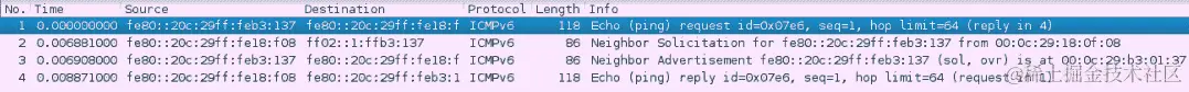 从前面的屏幕截图中,我们知道ping6正在使用ICMPv6请求和回复。