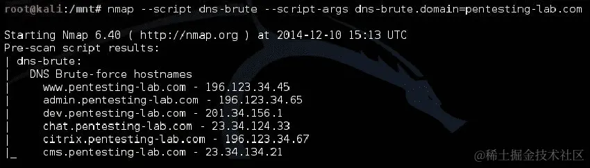 CodeInText:表示文本中的代码词、数据库表名、文件夹名、文件名、文件扩展名、路径名、虚拟 URL、用户输入和 Twitter 用户名。以下是一个例子:“许多组织可能有应用程序会监听一个不在nmap-services文件中的端口。”