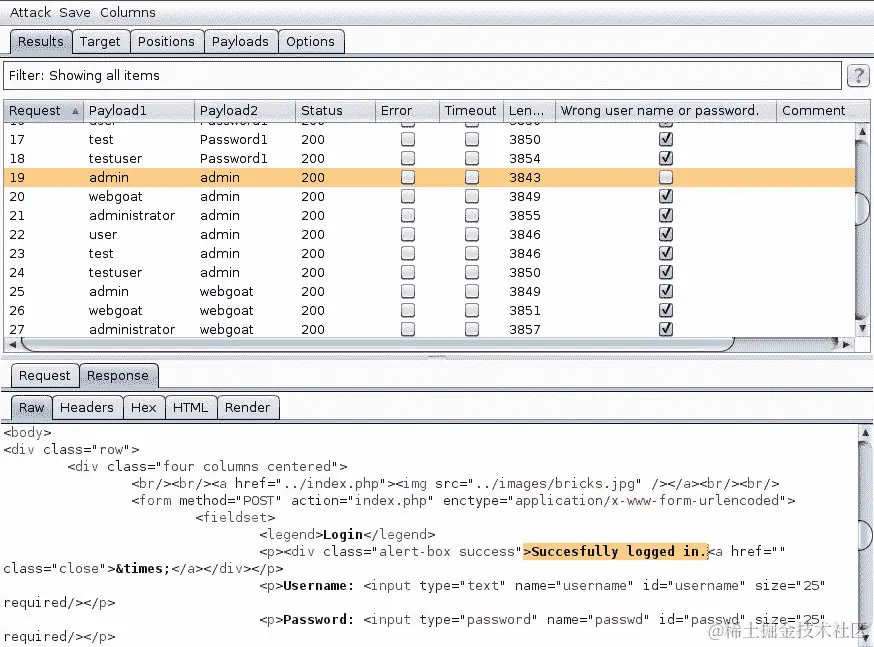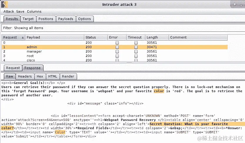 开始攻击,并等待 Intruder 找到一些东西。