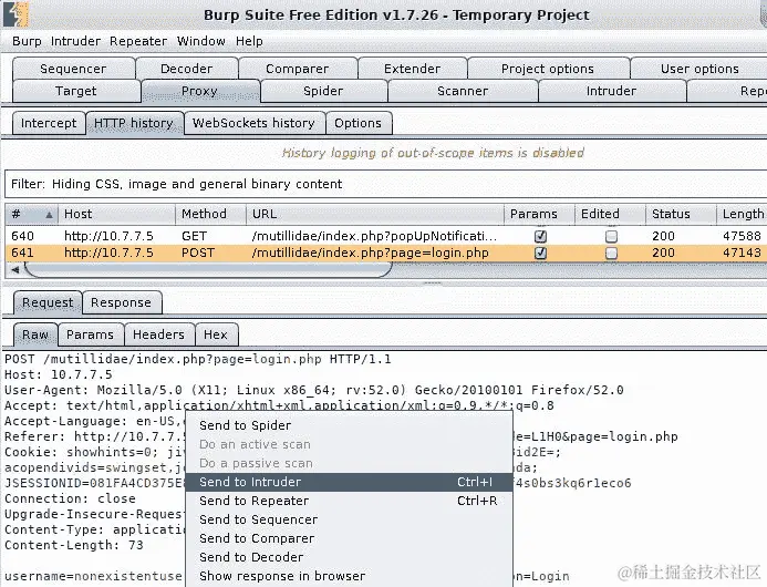 您使用 Burp Proxy 拦截请求并编辑它以包含受害者用于登录的SID参数: