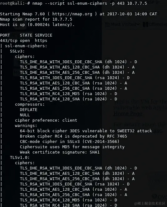第八章,攻击密码实现中的缺陷,首先介绍了密码学概念,这些概念对于渗透测试人员来说非常有用,例如 SSL/TLS 的一般工作原理,加密、编码和哈希的概念和算法的回顾;然后我们描述了用于识别弱 SSL/TLS 实现的工具,以及对已知漏洞的利用。接下来,我们介绍了检测和利用自定义密码算法和实现中的缺陷。本章最后给出了在使用加密通信或存储敏感信息时如何预防漏洞的建议。