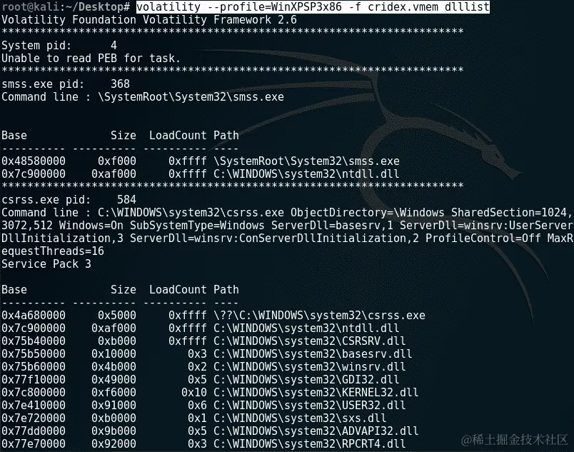 dlllist插件列出了内存中那个时间运行的所有 DLL。DLL 由可以同时供多个程序使用的代码组成。