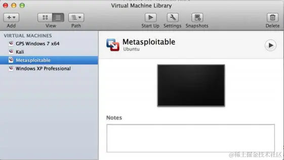 当你添加更多虚拟机时,你会看到它们包含在屏幕左侧的虚拟机库中。 通过选择任何特定的虚拟机,你可以通过单击顶部的Start Up按钮启动它。 此外,你可以使用Settings 按钮修改配置,或使用Snapshots 按钮在各种时间保存虚拟机。 你可以通过从库中独立启动每个虚拟机来同时运行多个虚拟机。