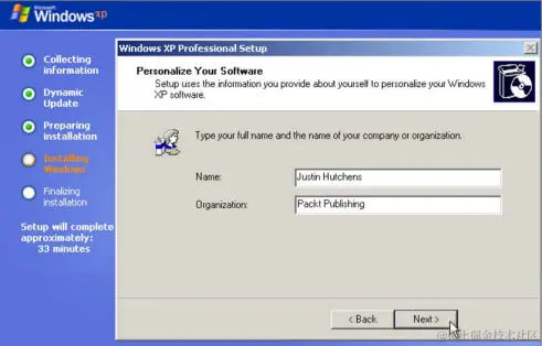 在测试环境中安装 Windows 操作系统对于学习安全技能至关重要,因为它是生产系统中使用的最主要的操作系统环境。所提供的场景使用 Windows XP SP2(Service Pack 2)。由于 Windows XP 是较旧的操作系统,因此在测试环境中可以利用许多缺陷和漏洞。