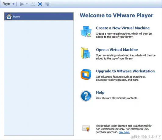 打开 VMware Player 后,可以选择创建新虚拟机来开始使用。 这会初始化一个非常易于使用的虚拟机安装向导: