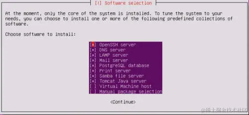 要选择任何给定的软件,请使用空格键。 为了增加攻击面,我已经选中了多个服务,仅排除了虚拟主机和额外的手动包选嫌。 一旦选择了所需的软件包,请按Enter键完成该过程。