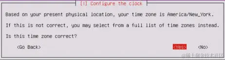 接下来,系统会要求你提供所在时区。系统将使用 IP 地理位置作为你的位置的最佳猜测。 如果这不正确,请手动选择正确的时区:
