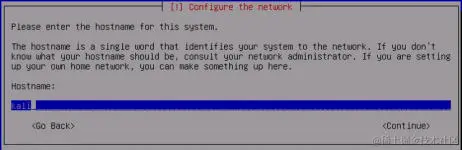 一旦开始,系统会引导你通过一系列问题完成安装过程。 最初,系统会要求你提供你的位置(国家)和语言。 然后,你会获得一个选项,可以手动选择键盘配置或使用指导检测过程。 下一步回请求你为系统提供主机名。 如果系统需要加入域,请确保主机名是唯一的,如以下屏幕截图所示: