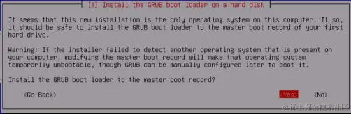 最后,选择Yes来安装 GRUB 引导加载程序,然后按Enter键完成安装过程。 当系统加载时,你可以使用安装期间提供的 root 帐户和密码登录: