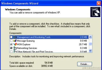 启用远程服务,特别是未打补丁的远程服务,通常是将一些漏洞引入系统的有效方法。 首先,你需要在 Windows 系统上启用简单网络管理协议(SNMP)。 为此,请打开左下角的开始菜单,然后单击 Control Panel(控制面板)。 双击Add or Remove Programs(添加或删除程序)图标,然后单击屏幕左侧的Add/Remove Windows Components(添加/删除 Windows 组件)链接,你会看到以下界面: