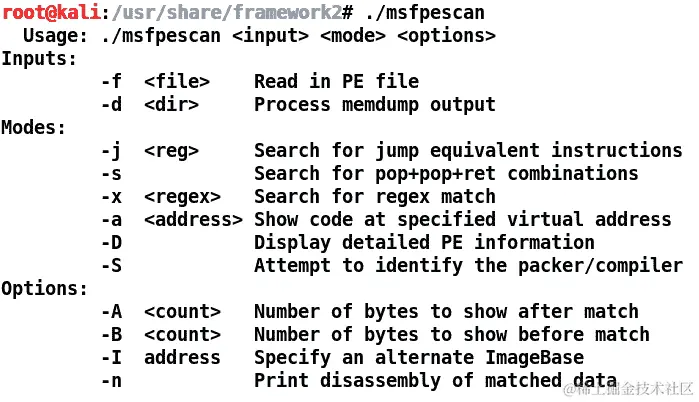 使用 msfpescan