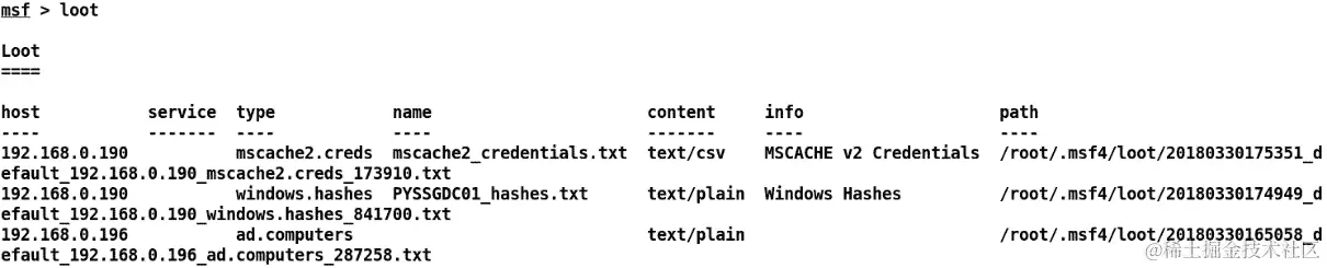 此外,我们可以使用loot命令查看所有收集的细节,如下所示:
