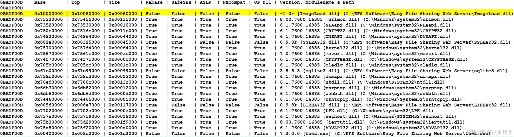 要找到跳转地址,我们将需要一个调试器,以便我们可以看到有漏洞的应用程序加载了哪些 DLL 文件。在我看来,最好的选择是 Immunity Debugger。Immunity Debugger 带有大量插件,可以帮助编写利用程序。