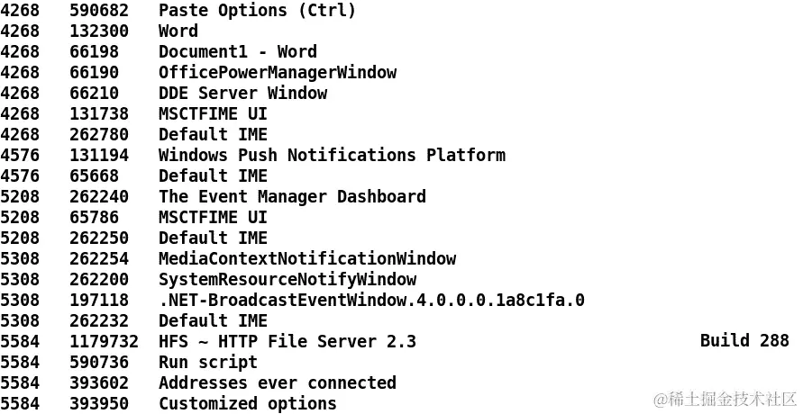 如建议的那样,我们有目标上所有打开的 Windows 的列表及其当前的进程 ID。让我们再探索一些: