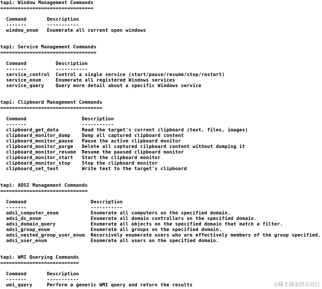 Windows Meterpreter 通过扩展 API 提供了许多新功能。扩展 API 提供了对剪贴板操作、查询服务、Windows 枚举和 ADSI 查询的简单访问。