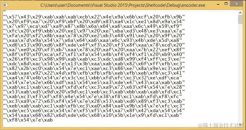 我们可以看到我们刚刚使用0xAB对 shellcode 进行了 XOR。这个程序将生成以下输出: