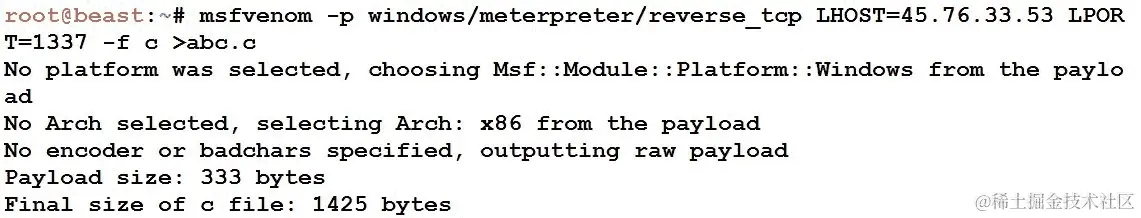 我们可以看到我们生成了 shellcode。我们将快速编写一个程序,使用XOR加密现有的 shellcode,如下所示:
