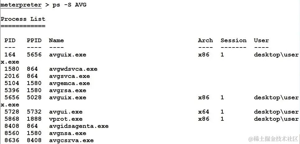 目标上有很多AVG进程在运行。我们不仅绕过了这个防病毒软件,还将检测率从 22/35 降低到 2/35,这相当令人印象深刻。对源代码进行一些小修改将生成一个完全不可检测的 FUD(完全不可检测)。但是,我会把这留给你来完成。
