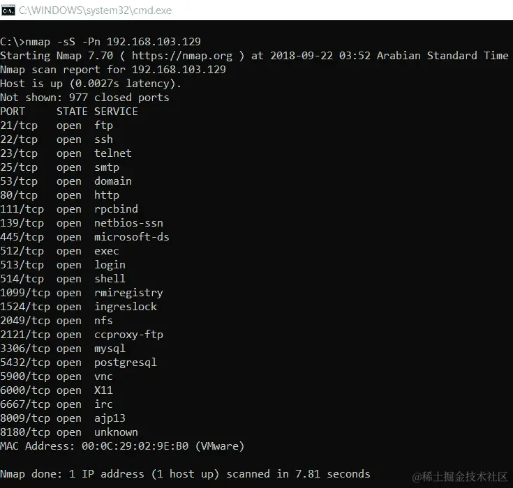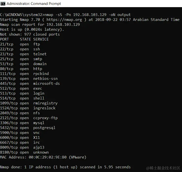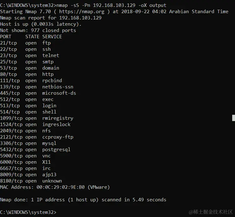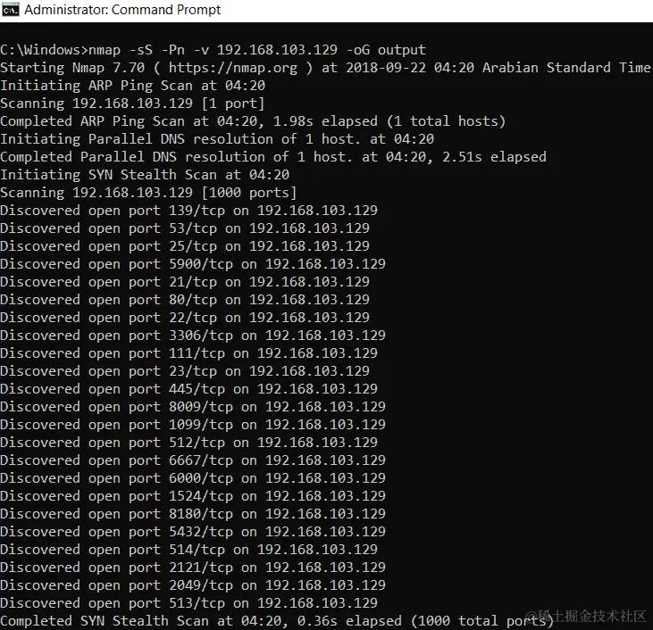 Nmap -sS -Pn 192.168.103.129 -v-oA output