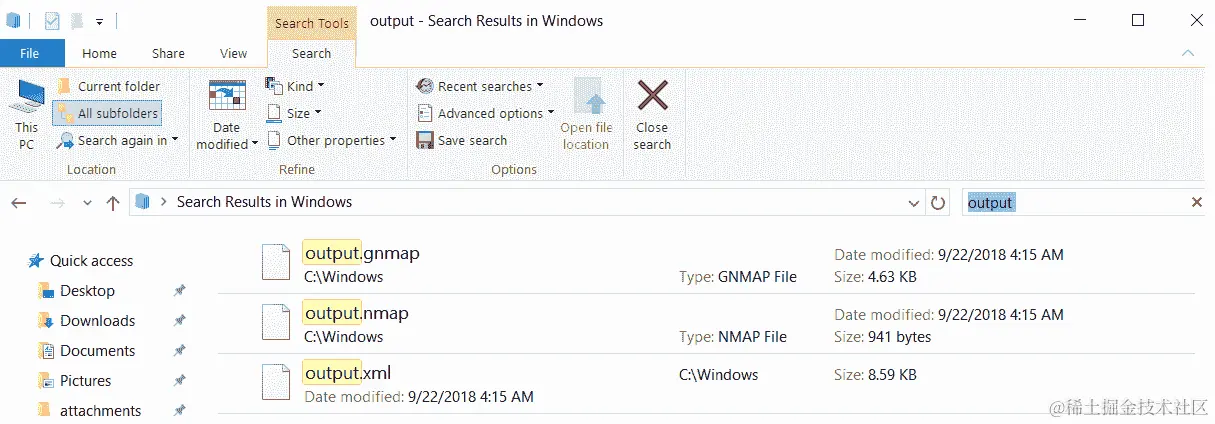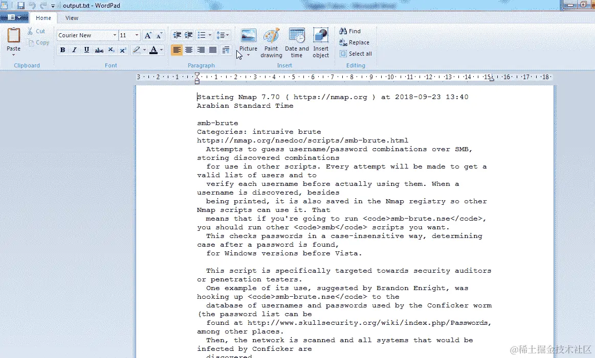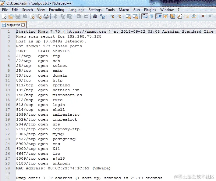 导航到 Nmap 安装文件夹并找到output.txt文件: