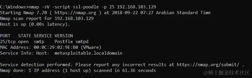 OS 检测信息:Nmap 中的 OS 检测是使用基于 TCP ISN 和 IP ID 预测的签名检测进行的。如果启用了详细信息,并选择了 OS 检测选项,Nmap 将显示这些 OS 的预测。