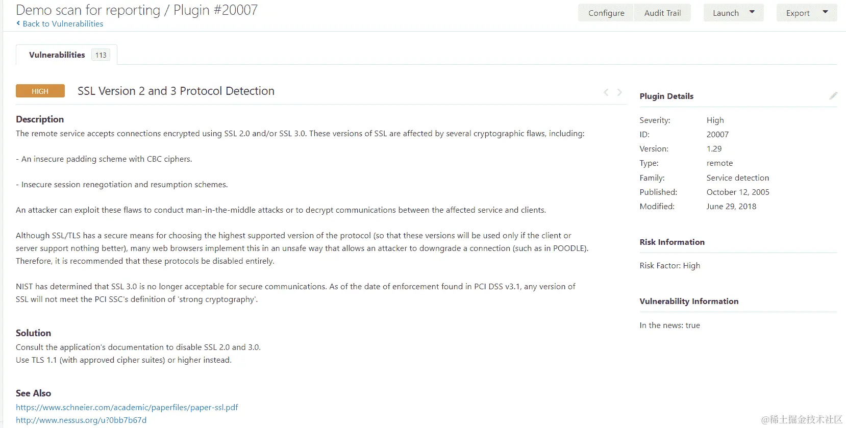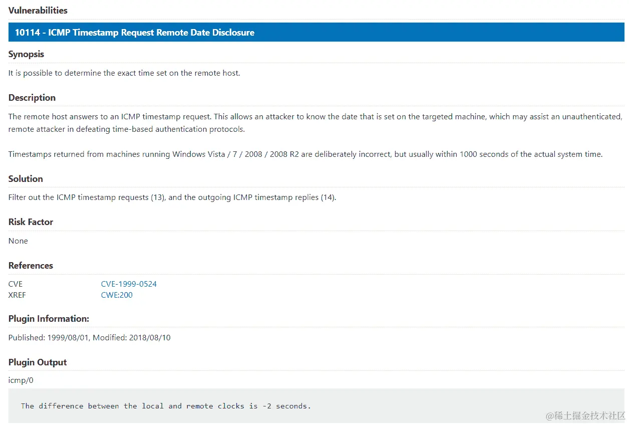 每个漏洞包括以下部分,其详细信息已在第五章中描述,配置审计: