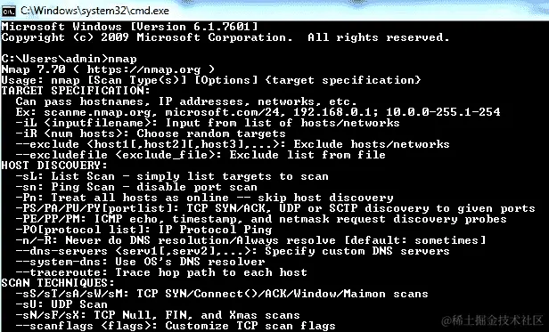 要安装 Nmap,可以按照第二章中提供的说明进行操作,了解网络扫描工具。这将允许您下载兼容版本的 Nmap 并安装所有必需的插件。为了检查您的计算机是否安装了 Nmap,请打开命令提示符并输入Nmap。如果 Nmap 已安装,您将看到类似以下的屏幕: