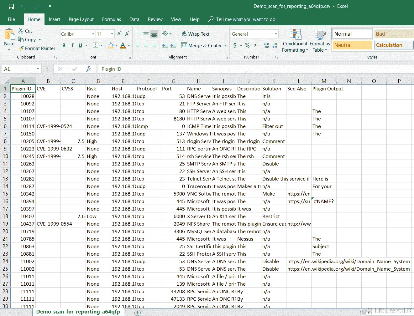 CSV 是一种用于在表格中存储数据的简单格式,稍后可以导入到数据库和诸如 Excel 之类的应用程序中。这允许用户将报告导出为.csv文件,可以使用 Excel 等工具打开。以下是一个示例 CSV 报告的截图: