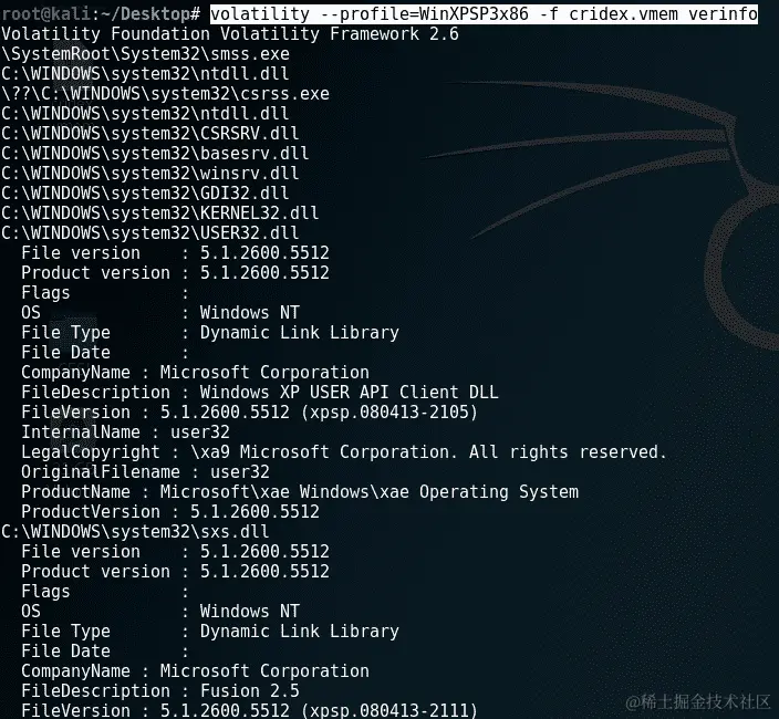 此命令列出了有关PE(可移植可执行文件)文件的版本信息(verinfo)。此文件的输出通常非常冗长,因此可以在单独的终端中运行,如果调查人员不希望不断滚动当前终端以查看过去的插件命令列表和输出。
