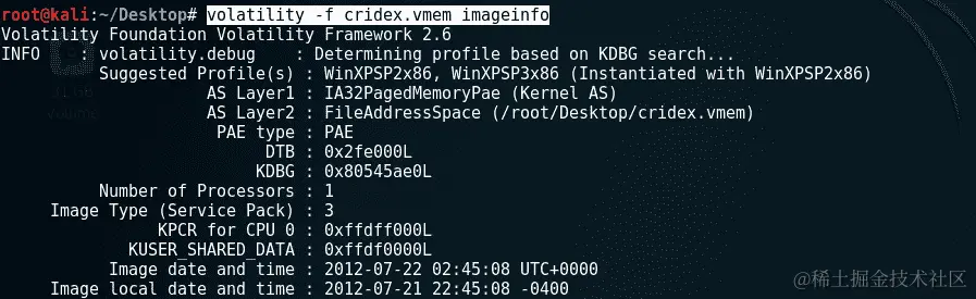 选择配置文件相对简单,因为 Volatility 会使用imageinfo插件为我们完成所有工作。