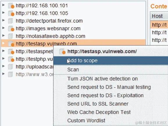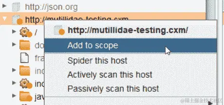 一旦在站点地图选项卡中填充了目标和 URL,您可以右键单击任何项目并将该项目添加到范围。这可以通过目标|站点地图或代理|历史选项卡进行。